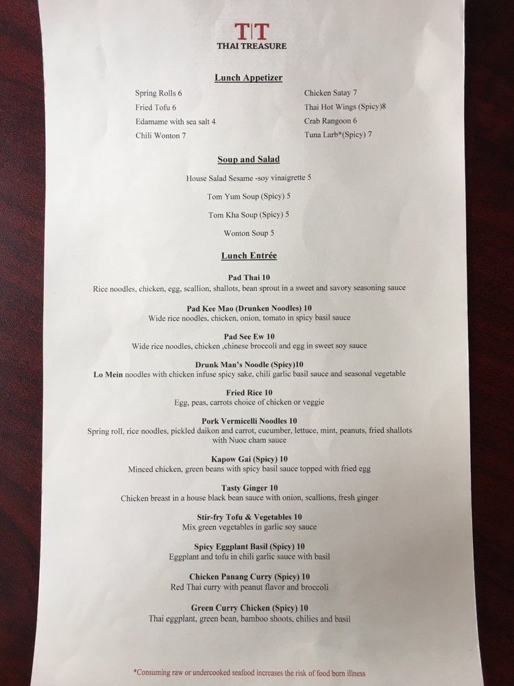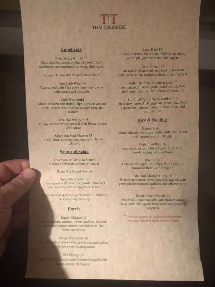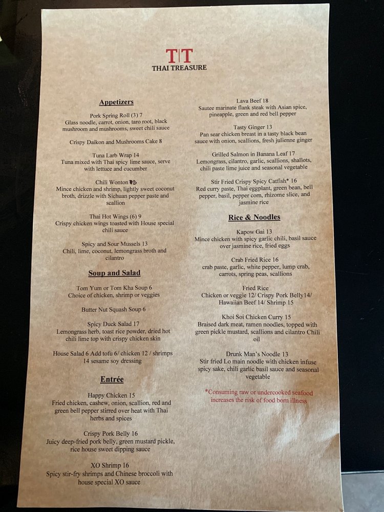 Whether dining in or taking out, an adventure awaits at Thai Treasure, perfect for groups and casual evenings alike.